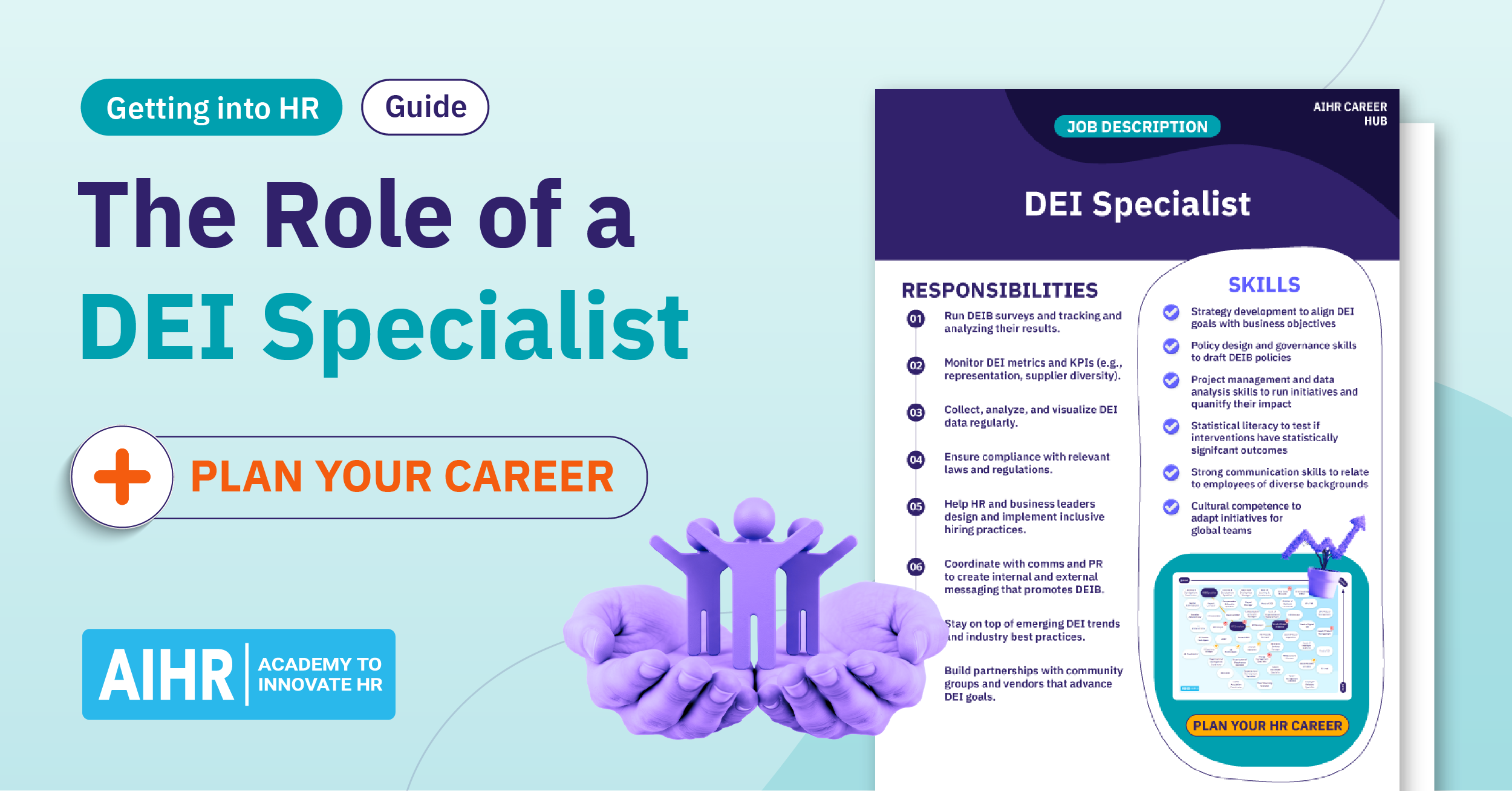 Access articles, practical tools, and the AIHR Career Map to spot roles that fit your ambitions, plan your next step, and build the skills to get you there.