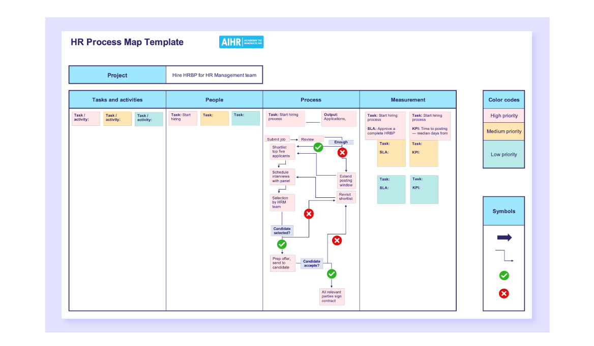 - A good process map template for HR covers structure, people, tasks and activities, process flow, and measurement.