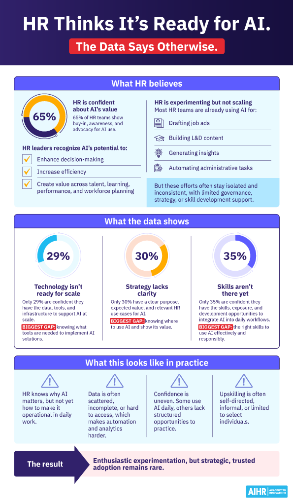 This limits HR’s ability to operationalize AI beyond simple experiments.