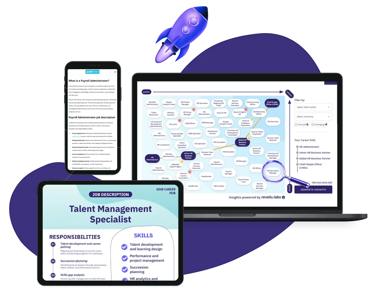 Access articles, practical tools, and the AIHR Career Map to spot roles that fit your ambitions, plan your next step, and build the skills to get you there.